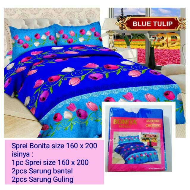 Sprei Bonita Queen B2 Size 160 X 200 Kasur No 2 Motif Blue