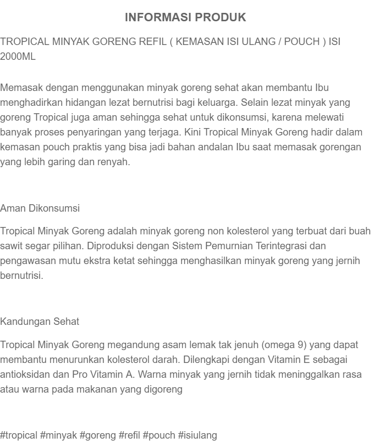 Jual Tropical Minyak Goreng Pouch 2000 Ml Murah Januari 2020
