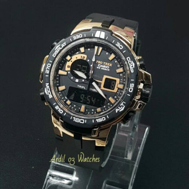 Jual Jam Tangan Casual Murah Cowo G Shock Protrek Black Gold