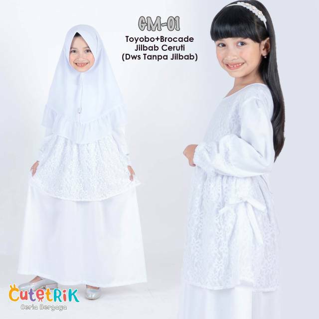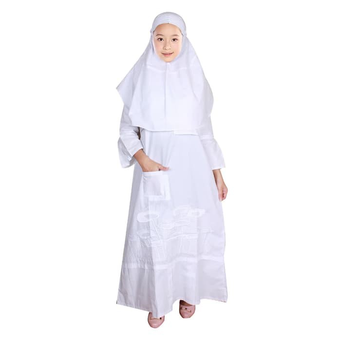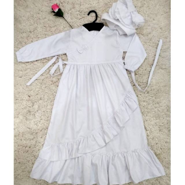 Gamis Syari Busana Muslim Anak Perempuan Warna Putih Polos Satu