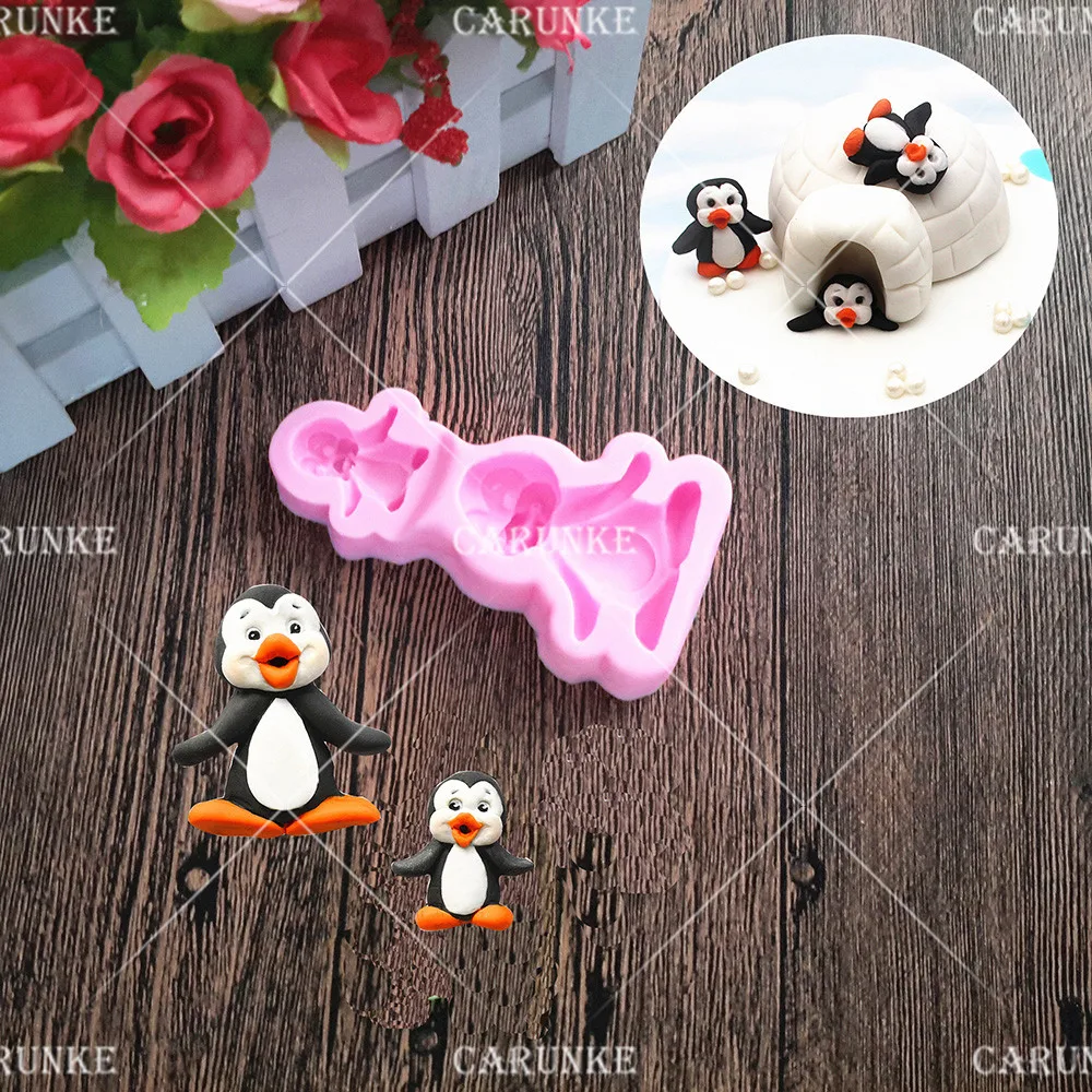Carunke Penguin Bunga Silicone Cetakan Fondant Cetakan Kue