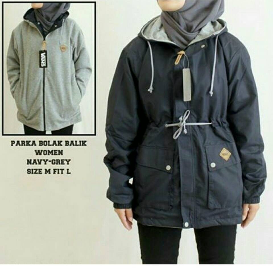 Terbaru Jaket Wanita Vans Bb Parka Jaket Bolak Balik Navy Abu