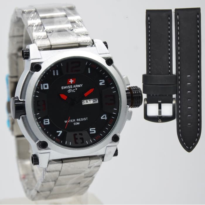 Jam Tangan Swiss Army Original Sa 6062 Black White Black Leather