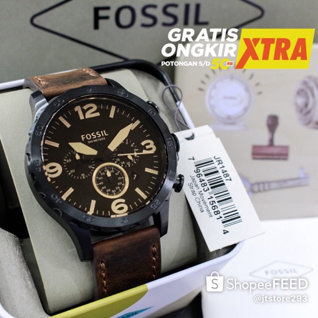 Terlaris Jam Tangan Pria Fossil Jr 1487 Bonus Gelang Arloji