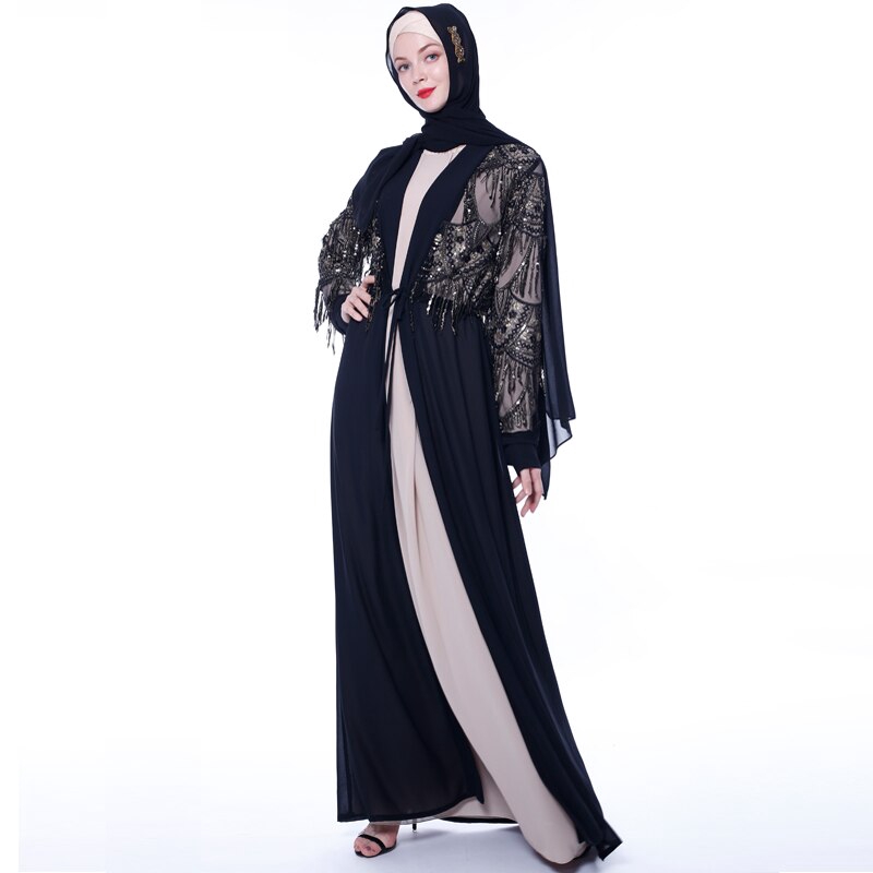 Black Abaya Kaftan Cardigan Embroidered Abaya Islamic Modest