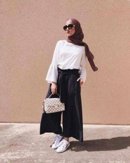 7 Padu Padan Celana Kulot Warna Hitam Untuk Hijaber