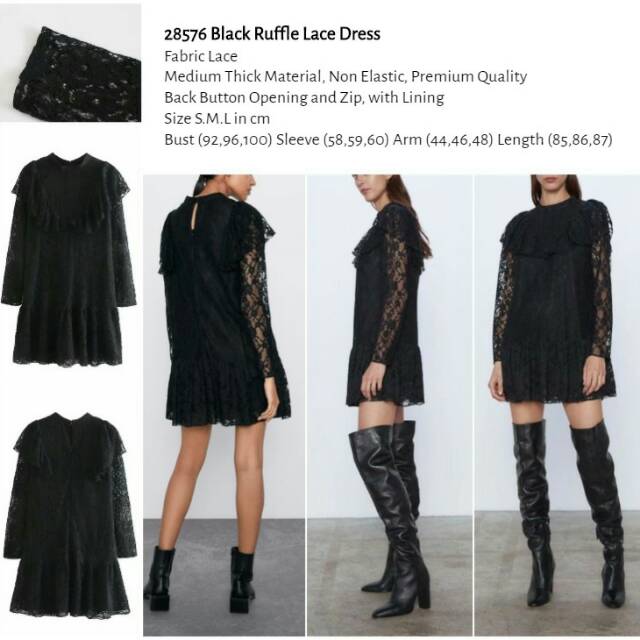 Black Ruffle Lace Dress Shopee Indonesia