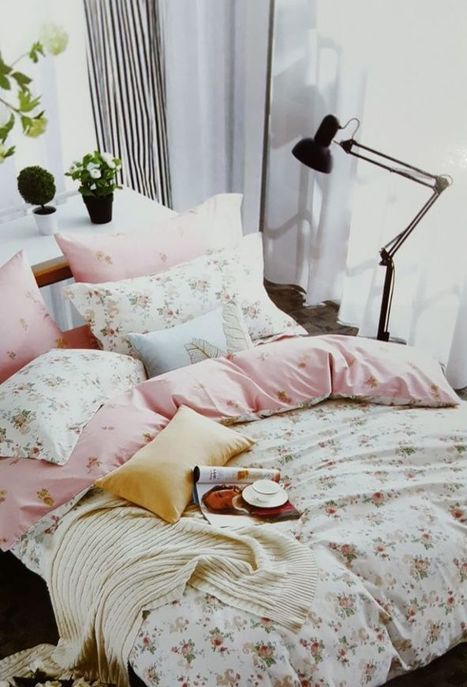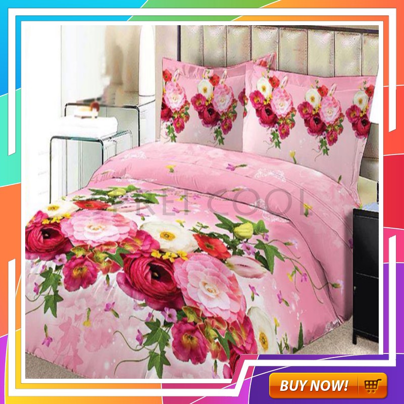Jual Set Bedcover Merk King Motif Bunga Freesia Pink Sprei