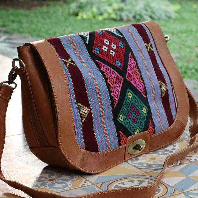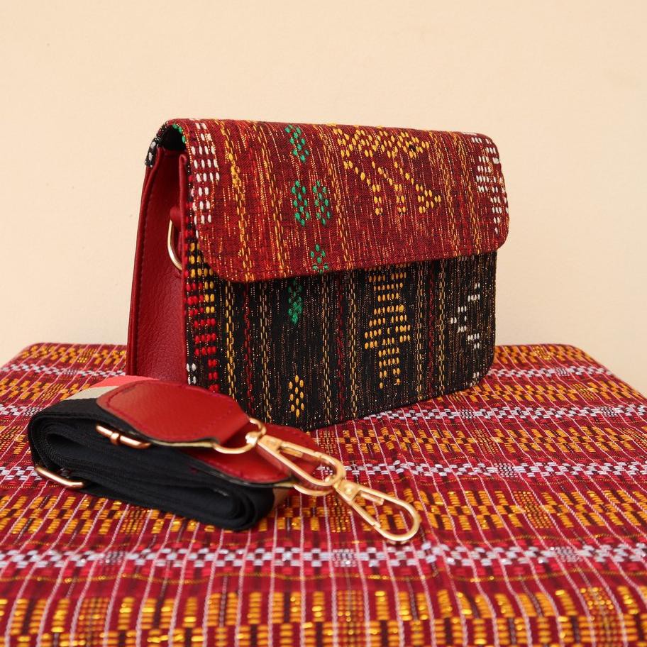 Hot Sale Tas Etnik Wanita Tenun Dikombinasi Kulit Sapi Bahan