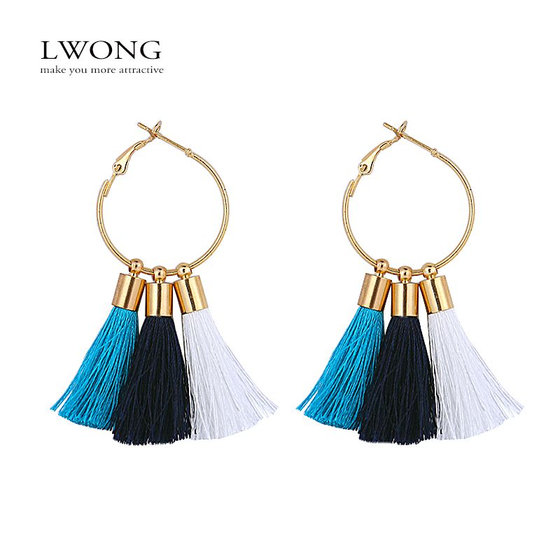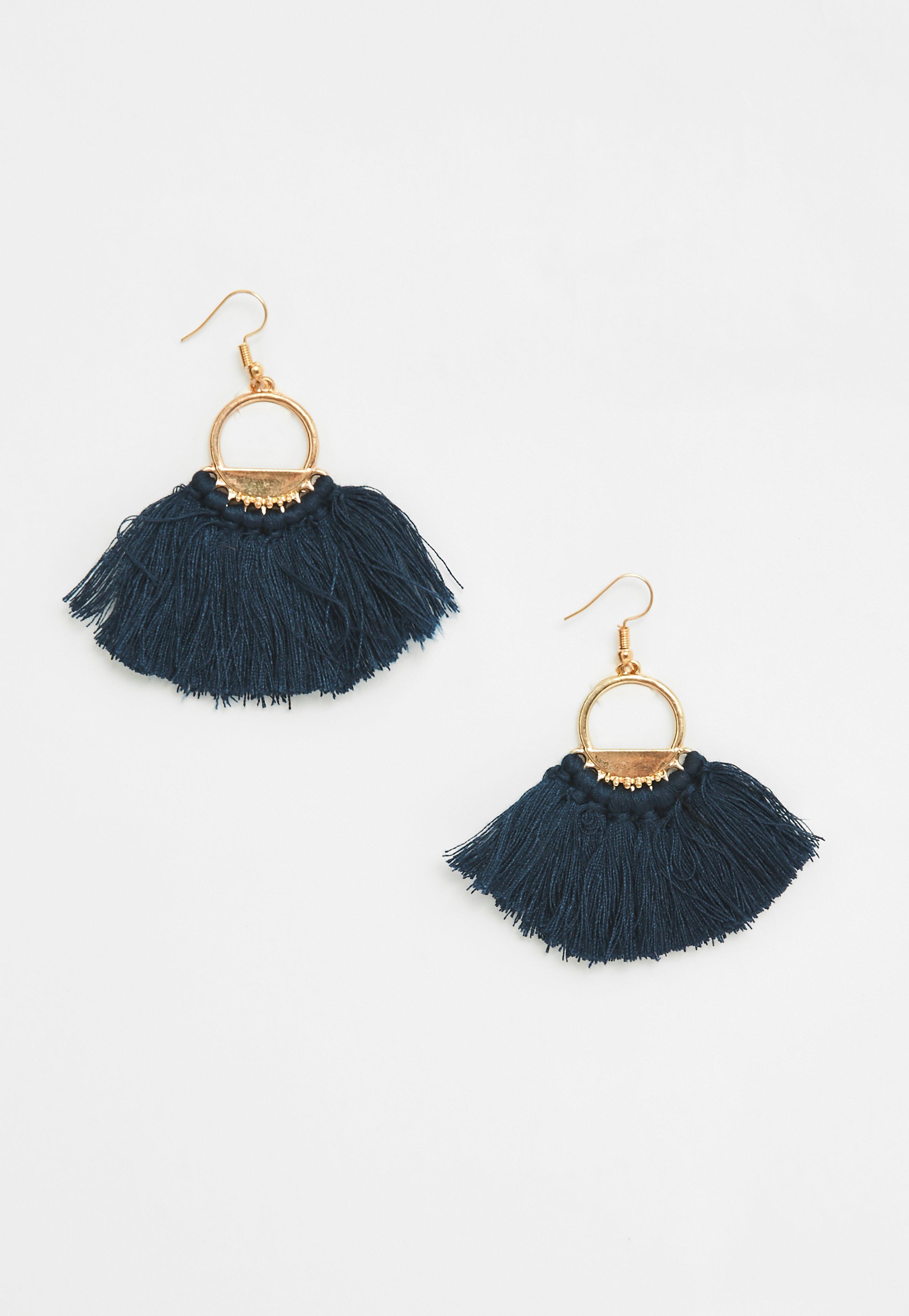 Blue Threaded Tassel Hoop Earrings Handpicked