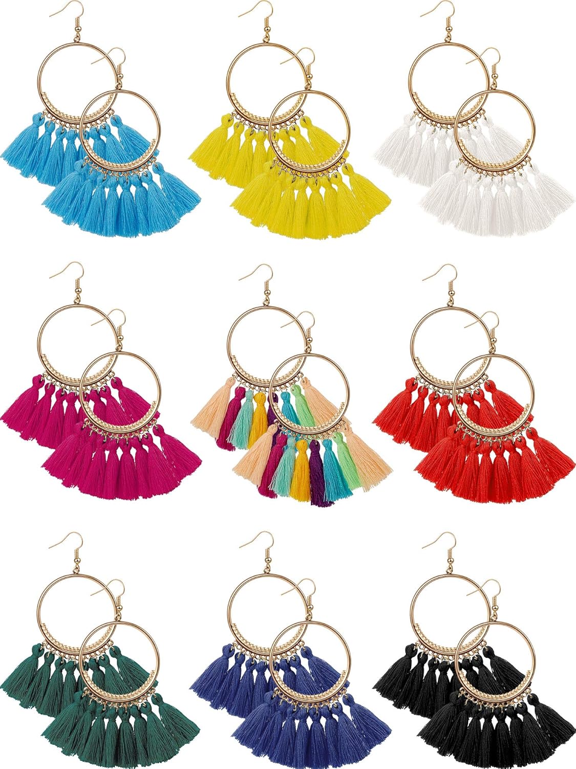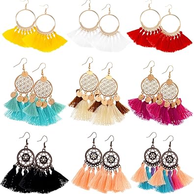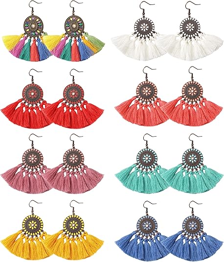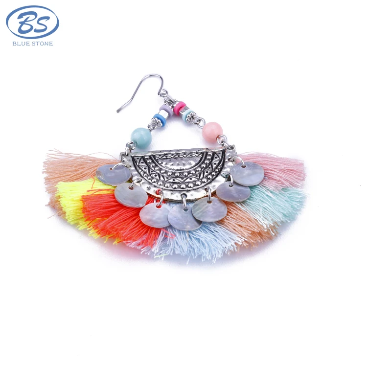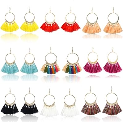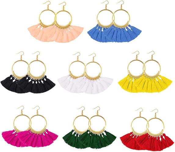 Amazon Com Gejoy Tassel Hoop Earrings Bohemia Fan Shape Ear Drops